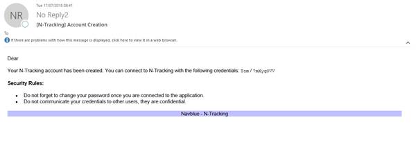 After you click the "Save user" button, N-Tracking creates an account for that user and generates a password. The username and password are then emailed to the specified address.