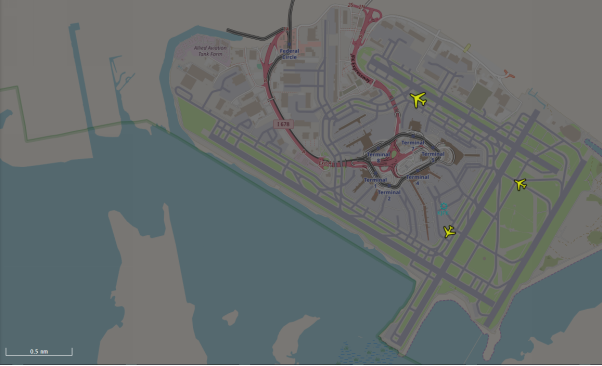 If your airline's N-Tracking license includes surface tracking, you can display airport maps directly on the main map to check surface congestion and/or gate availability.