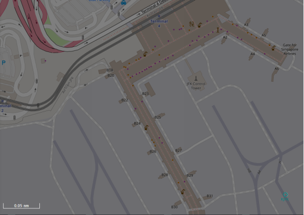 In this example (JFK airport), you can see the airport map at a zoom level of 1 nm, but that's not zoomed far enough if you want to check terminal gates.