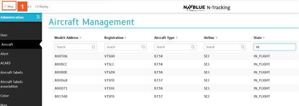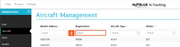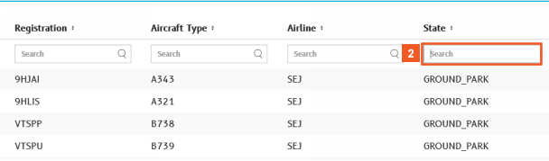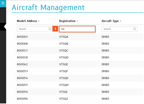 You can search and filter the list using any of the search fields, such as for Registration, Aircraft Type, or State.