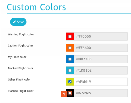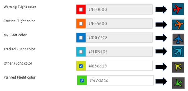 If the checkbox is not selected, the default color applies. The default color used for Planned flights is black. You can assign a different color to signal Planned flights.
