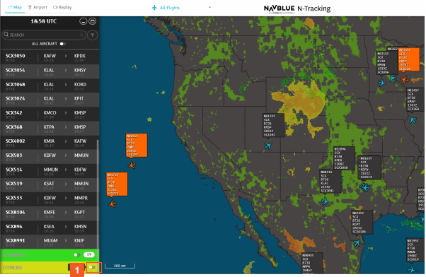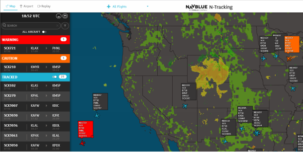 N-Tracking default colors are applied to aircraft symbols on the map for a visual indication of status.