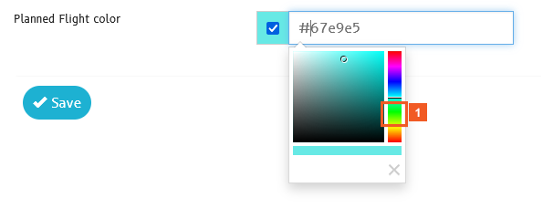 The input field for the Planned Flight color shows the new hex code of the shade of green you chose.