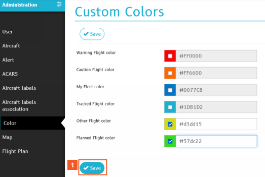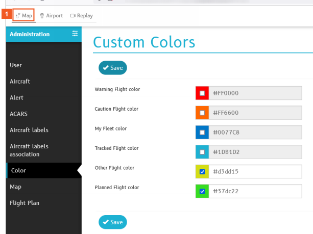 In this topic, Administrators learn to set the color N-Tracking uses to display warning and caution information and different categories of aircraft in the Flight list and as icons on the map
