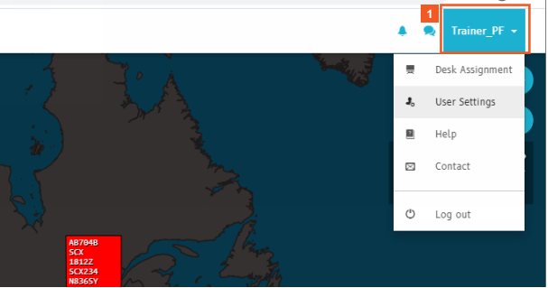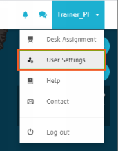 Click the user name (Trainer_PF) dropdown button.