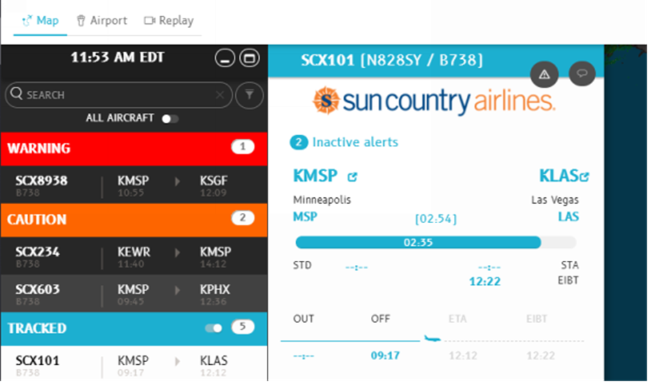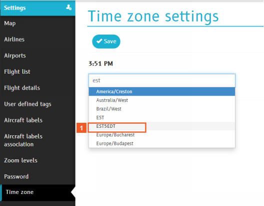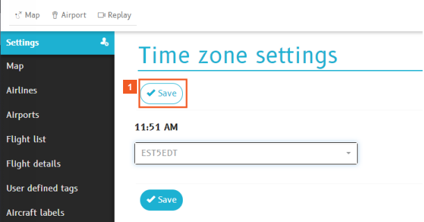 In this topic, you learn how to change the default time zone (UTC) used on the map and on the Flight Details pane to a preferred time zone.