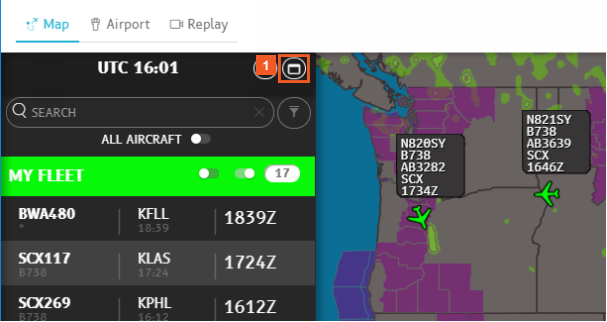When you click the restore icon, the Flight List displays in the "extended" (full-screen) layout.