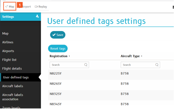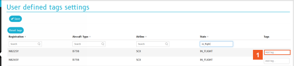 In this example, you define custom tags and assign them to aircraft for filtering purposes.
