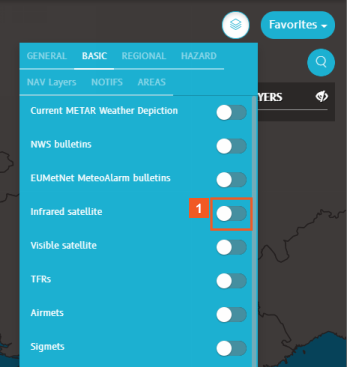 Next, enable the Infrared satellite image layer and learn how to read the information it adds to the map.