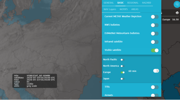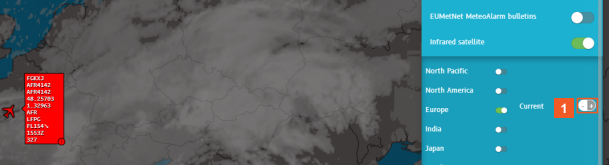 The Basic Weather Package is the standard global weather package that you receive with an N-Tracking subscription. Infrared and Visible satellite images are available globally, as well as SIGMETs. EUMetNet MeteoAlarm bulletins apply to the European Union only.