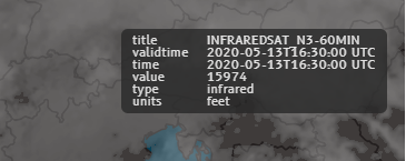 Hover over an area of cloud cover and N-Tracking displays a measure of 81 on the greyscale for cloud height.