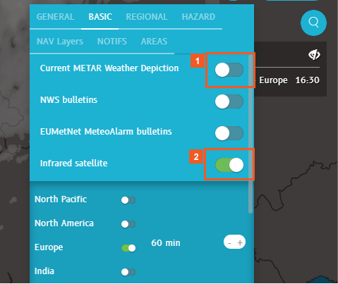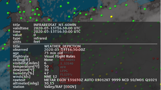 You now know how to enable and work with the Infrared satellite weather layer -- and how to use it in combination with METAR information.