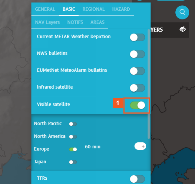 Next, let's enable the Visible satellite weather layer. It works in much the same way.