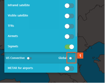Disable the Visible satellite layer -- at the "global" level -- and let's move on to a different Weather Layer -- SIGMETs.