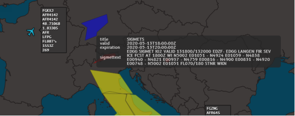 As the name suggests, global SIGMETS provide meteorological information around the globe. The SIGMET issues colored shapes covering FIRs (flight information regions):