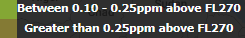 In this example, increasing the time offset from six to twelve changes the area to which the ozone warning applies.
