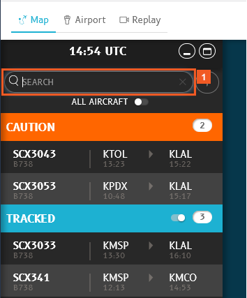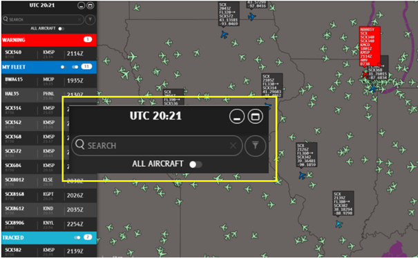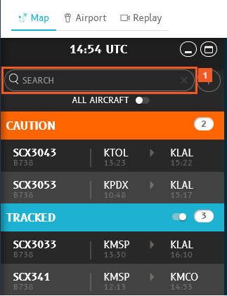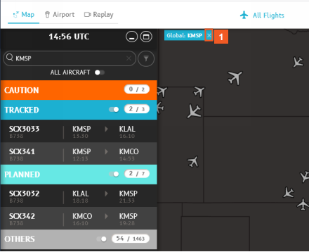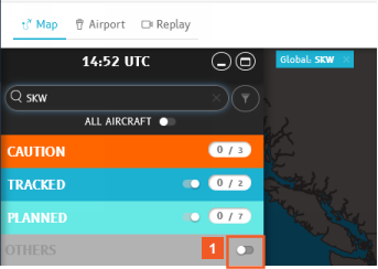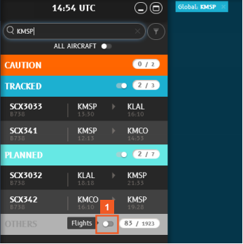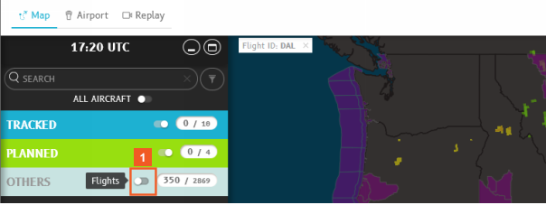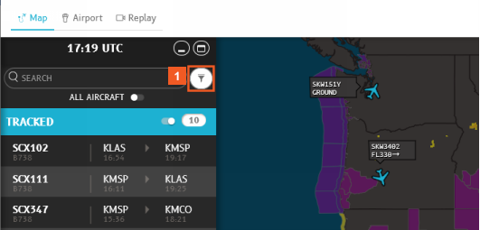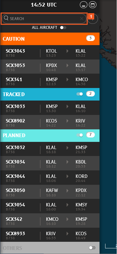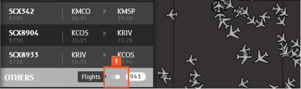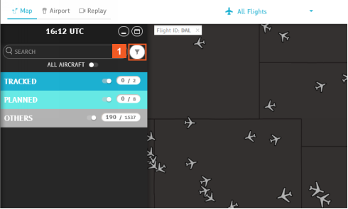For example, the OTHERS section of the Flight List includes a count of aircraft not in your fleet. That can be a lot of aircraft. Search or filter based on flight characteristics or information to show only the relevant flights on the map.