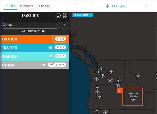 For this example, search for Skywise aircraft. "SKW" is included in their Flight ID.