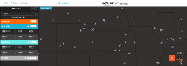 When you filter the Flight List, N-Tracking displays a label identifying that filter on the top left corner of the map to help maintain situational awareness.