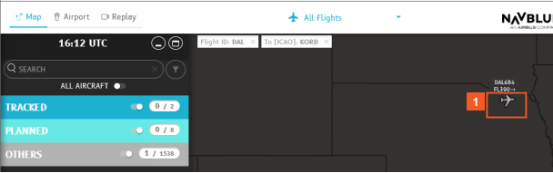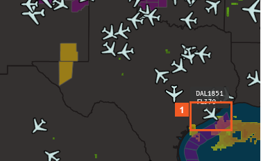 To learn more about those flights, you must display them on the map and then use their aircraft labels to view information such as Flight ID.