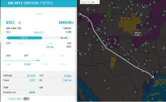 350 of the 2,869 currently active flights have DAL in their Flight ID.