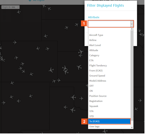 In this example, a filter to display only those flights with DAL in their Flight ID is already active.