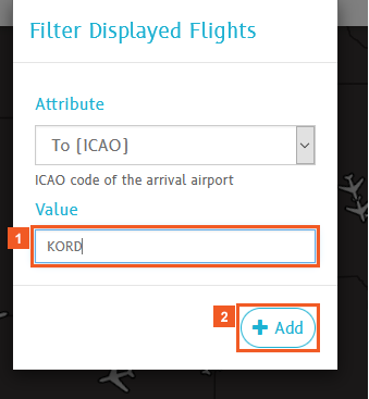 When you build a search filter, you can combine multiple parameters of different types (for example, EGLL arrival airport, A320 aircraft, and LFPO origin airport).