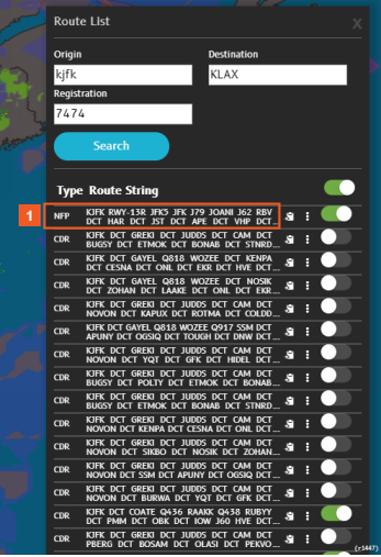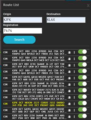 For the CDR and PREF routes listed in the Route List, you see fuel and time data only if you have recalculated that particular route in N-FP.