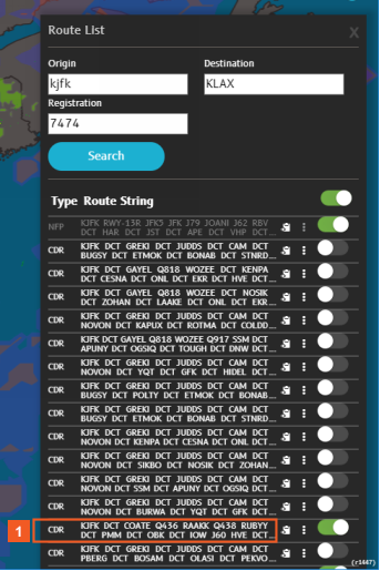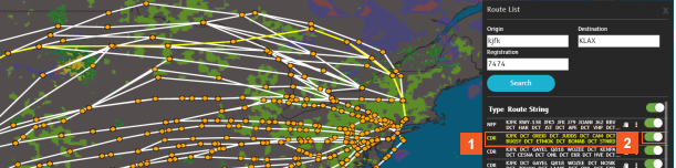 - route string in the Route List to see which route on the map that string represents.