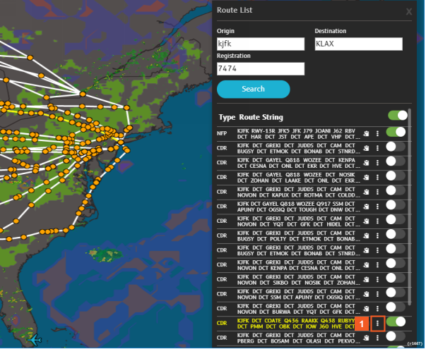 Another way you can work with the listed routes is to click the slider to the right of "Route String" to hide all of the routes, then click the N-FP route string slider to display just that route, and then proceed to re-activate other routes one at a time for display and analysis purposes.