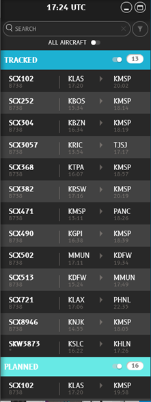 Flights move from PLANNED to TRACKED once in flight.
