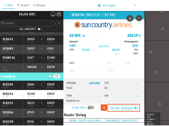 Customers who subscribe to Route Analysis can launch their analysis directly from the Flight Details pane.
