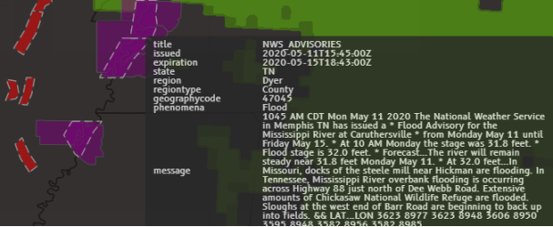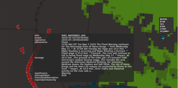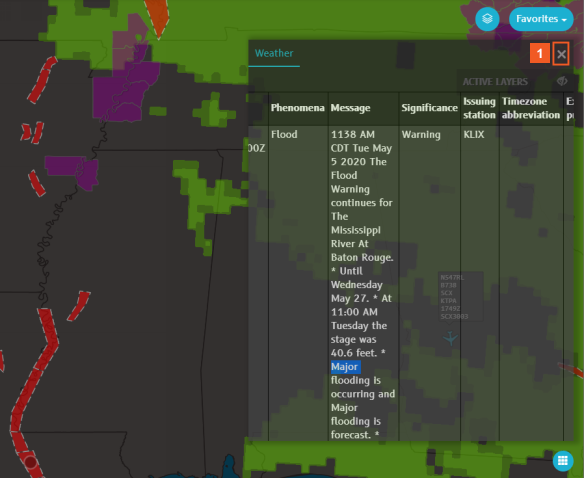 In this example, this NWS bulletin displays a flood warning for Baton Rouge.