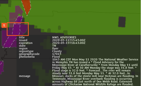 Let's move on and explore the NWS bulletins' Advisories AMI (area of maximum impact) information displayed by N-Tracking.