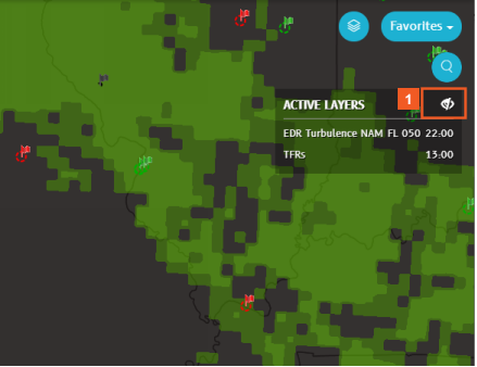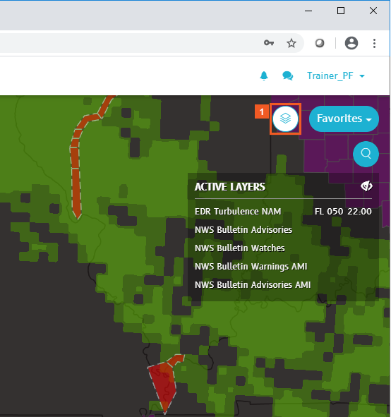 The completes your brief tour of AIRMETs. Access the Layers pane again to disable this weather layer.
