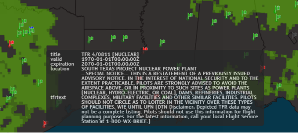 When you see TFRs on the map, best practice is to click on the TFR and read the text to familiarize yourself with the restriction.