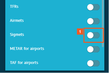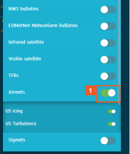 Like the NWS bulletins, Airmets has subordinate controls for US Icing and US Turbulence. If you want to disable both of these layers, you can do so by disabling the Airmets slider.