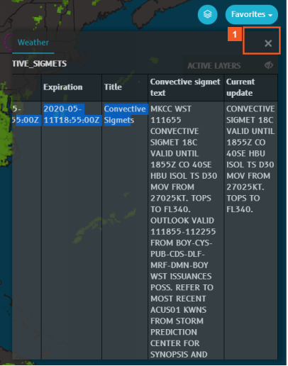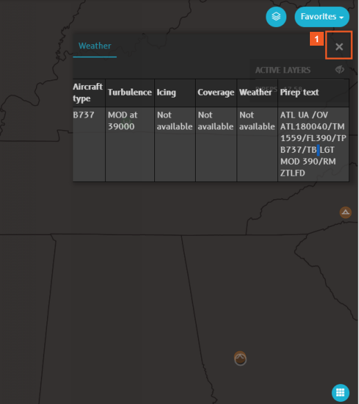 You can triple-click on the text in the Pirep text column to select it to your clipboard, if you want to copy the text into a communication. Close the Weather pane after you review the information.