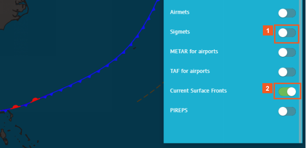 The Sigmets layer contains options for both US Convective (American) and Global.