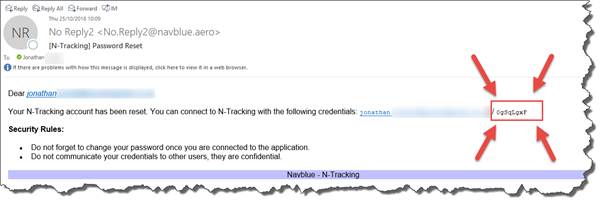 During your N-Tracking implementation, NAVBLUE sets up user accounts, including your Administrator account. As other airline employees join the team to use N-Tracking, you will add those user records as needed. New users receive an automated email with their username and password when the account has been created.