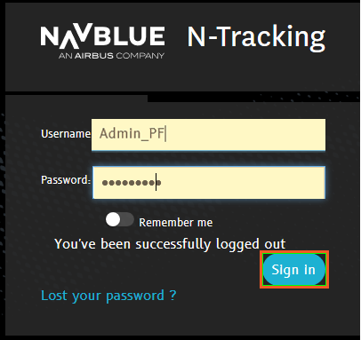 In this topic, you learn how to log in and out as an N-Tracking Administrator.