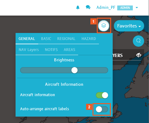 On logging in for the first time, you might choose to set the aircraft labels to automatically rearrange themselves. Do this in the Layers menu on the General tab.